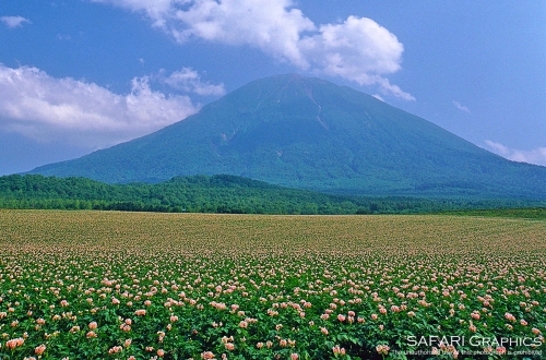 また羊蹄山の麓には、1,200ha(東京ドーム約256個分)の作付面積を誇るじゃがいも畑があり、例年6月下旬〜7月中旬には星形のかわいらしい花をつけ、ピンクや薄紫、白などの鼻で埋めつくされた一面の花畑となります。