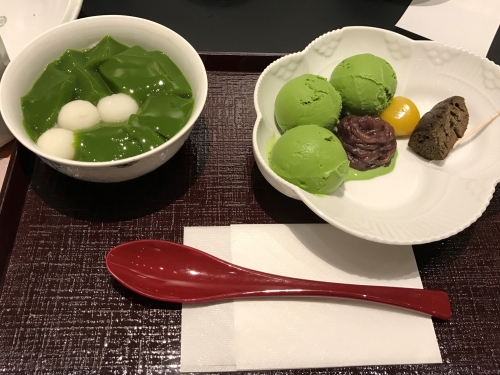 おすすめは、ぷるぷるの食感と濃厚な抹茶の味で人気の生茶ゼリィ。抹茶好きなら一度は食べたいスイーツです。まるで本物の抹茶を飲んでいるかのような、深い抹茶の味わいそのままで、小豆や白玉とも相性抜群!抹茶アイスも濃厚でおいしく、抹茶尽くしの大満足のスイーツです。