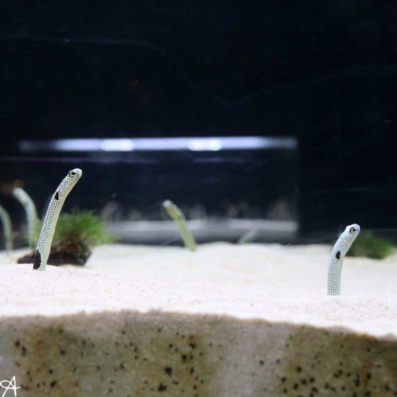 クマノミやチンアナゴが展示されています。クマノミは、私たちが知っている「カクレクマノミ」以外にもハマクマノミ・トウアカクマノミなど、日本で見ることができるクマノミを6種類見ることができます。