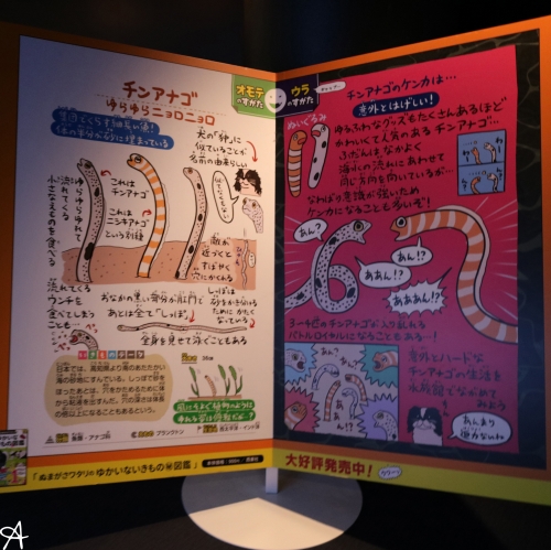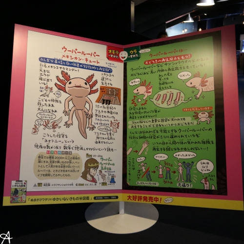 ここにはオオサンショウウオの身長計や、大きな絵本型の生き物の説明資料が展示されており、日や時間によってはワークショップが開催されています。全長170cmあるオオサンショウウオの身長計は、子供だけでなく大人も並んで写真を撮りたくなってしまうこと間違いなしです。