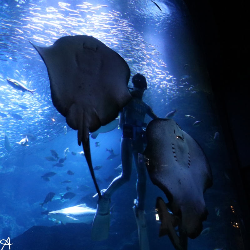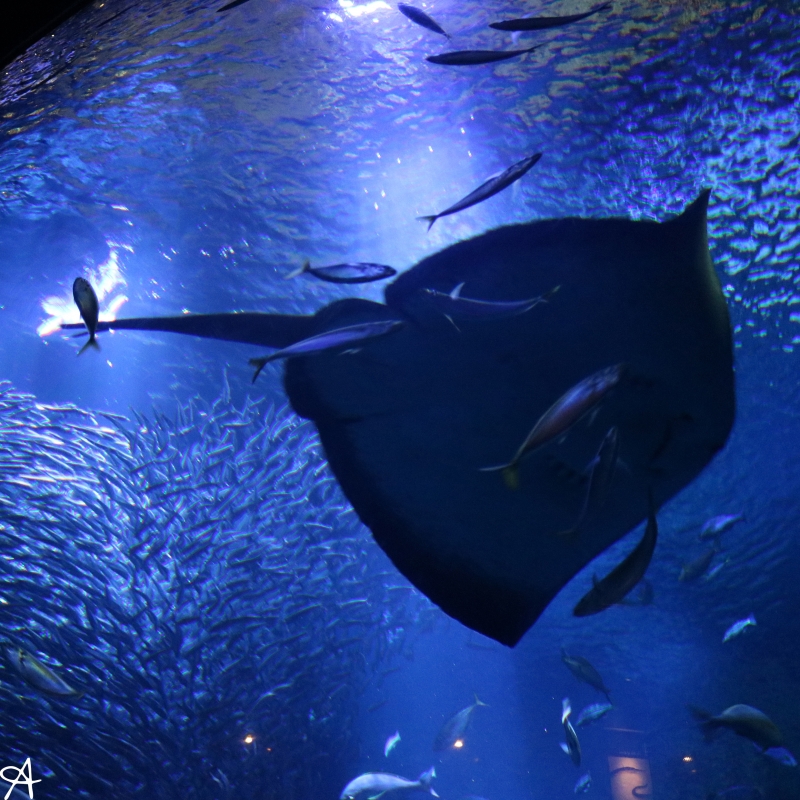 京の海エリアには、一際大きな水槽があります。京都の食文化にちなんだ魚や、イワシの群れ、エイなど、京の海に生息する生き物を見ることができます。1日2回、水槽内の魚のエサやりパフォーマンスが開催されており、とても美しく迫力があるので、大人も子供も夢中になれます。