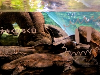 写真:liberi travel |  写真:liberi travel 水槽左側に重なるようにいるのがオオサンショウウオです |  写真:liberi travel 水槽にぎっしり入っています |