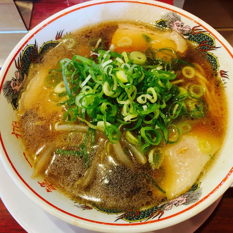 ラーメンは豚骨醤油ラーメンの1種類のみで、スープは見た目には透明感がありつつも、しっかり豚骨のコクも感じられます。やわらかめでモチッとした麺が美味しく、トッピングのチャーシューもたっぷり!そして九条ネギの食感と甘味がラーメンの完成度をアップさせます。