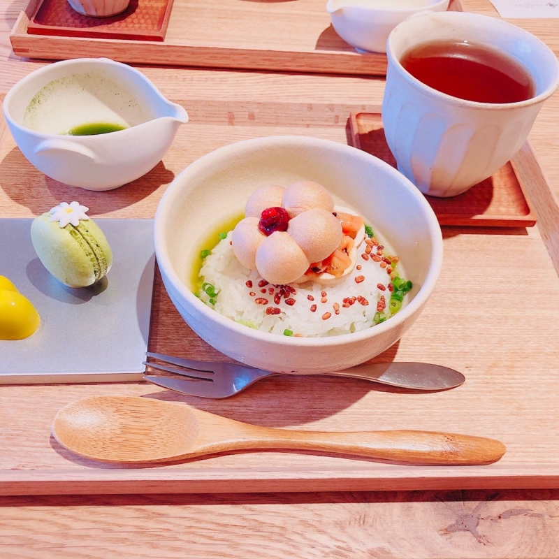 ランチ時におすすめは、おこわのセットやお茶漬け、お素麺など。ゆっくりと味わった後は、店内の工房で仕込んだ抹茶のスイーツをいただきましょう。