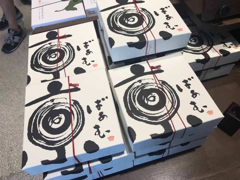 おたべは八つ橋だけにとどまらず、洋菓子の製造、販売も行っています。なかでも有名なのが、上の写真の「京バーム(抹茶味)」。こちらもお土産として人気です。