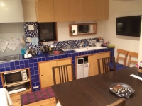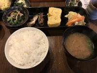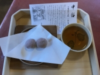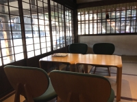 写真:トラベルライター 和の朝ごはん(600円) |  写真:トラベルライター 共用のリビングスペース |  写真:トラベルライター 「申餅」350円(ほうじ茶付き) |