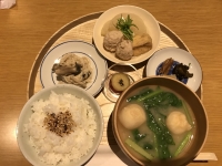 写真:トラベルライター 目出鯛みくじ(500円) |  写真:トラベルライター 佛光寺の境内にある「d食堂」。 |  写真:トラベルライター 一汁三菜の京定食(1,200円) |
