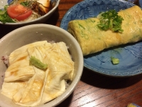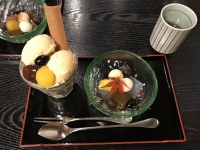 写真:トラベルライター |  写真:トラベルライター (左)とろゆばごはん(600円) |  写真:トラベルライター きなこパフェ&あんみつのセット(1,000円) |