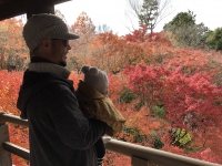 写真:トラベルライター 通天橋からの紅葉。 |  写真:トラベルライター 中村屋の助六寿司(写真は5人分) | |