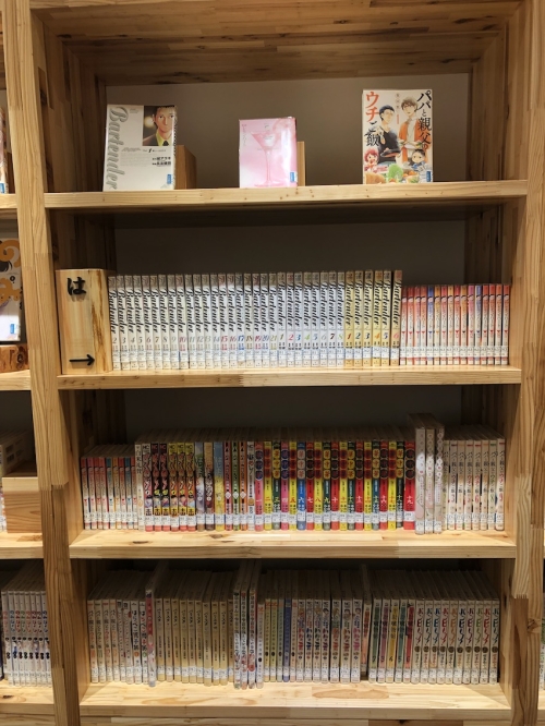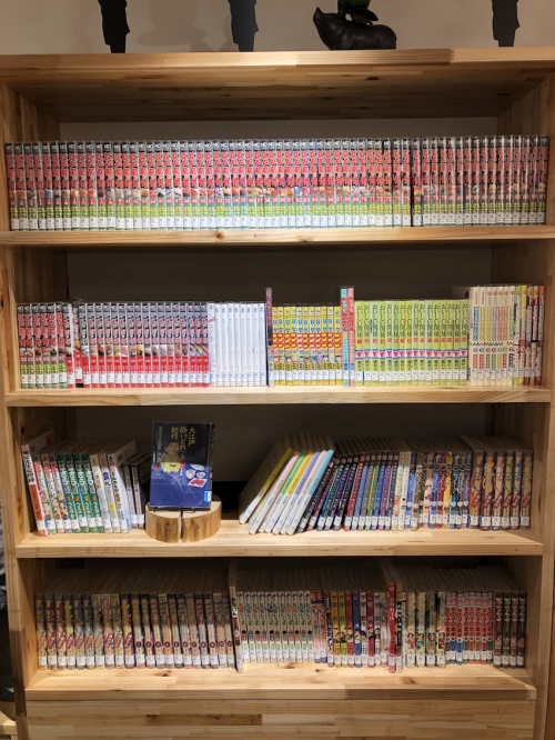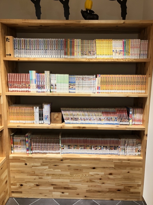 出典:sushisandwich81.comまんがの壁の壁。漫画「美味しんぼ」が全巻ある。