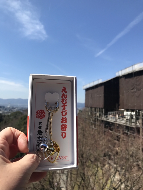 境内の中では清水寺のお守りが購入できます。有名な清水の舞台からは、京都の街並みが一望できます。また清水寺のすぐ隣には、縁結びで有名な地主神社があるんです。恋を呼び込みたい若い女性から、恋愛成就させたい方、カップルなど多くの人で賑わっています。お守りは、恋を呼び込みたいよろこび(¥500)や、カップル用のハートの金と銀のキーチェーンが入ったLove(¥2,000)が人気。