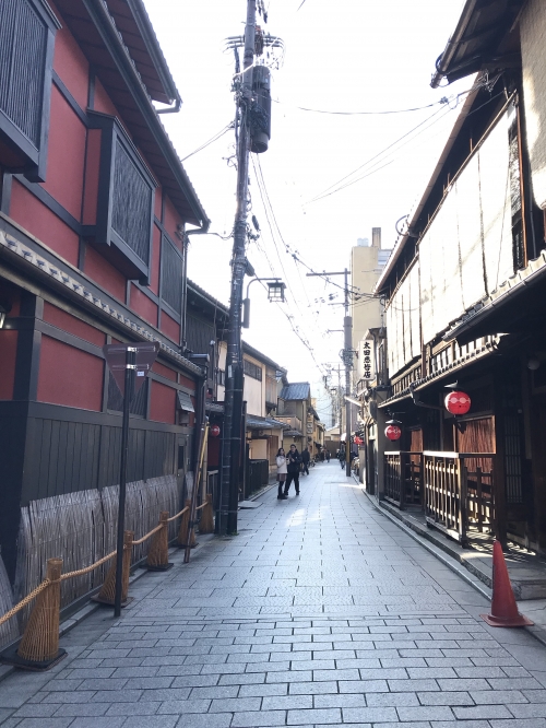 四条通から西、花見小路通へ抜けると、そこは舞妓さんが多く住んでいる茶屋街となります。料亭、甘味処や置屋が沢山並んでいます。メニューが外に出ていれば観光客の方も入れるお店ですが、ここにある多くは一見さんお断りのお店になります。