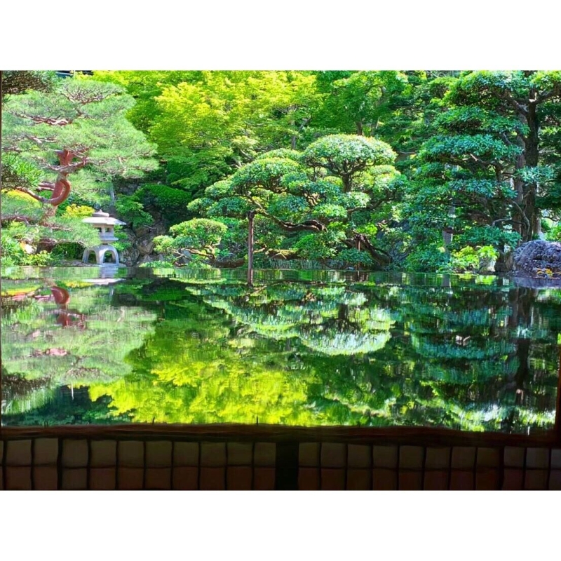 仁和寺近くにある、国登録有形文化財に登録されている邸宅。昭和12年(1937年)に建てられた数寄屋造りの家屋で、特に主屋の大広間に置かれたテーブルに映る、庭園のリフレクション風景が美しいと評判です。