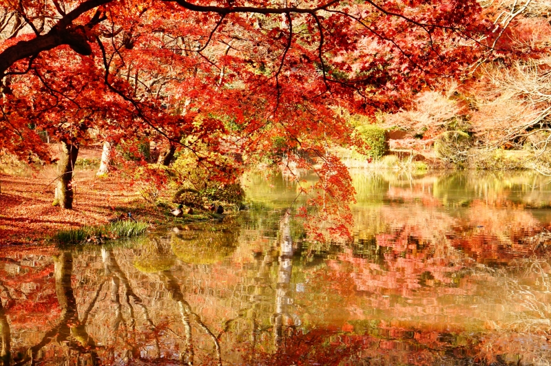 池に映り込む紅葉だけでなく、紅葉以外の植物に出会えるのも植物園ならでは。とても広い敷地ですので、ゆっくりと休みながら見物することもできます。人だらけの観光地に行きたくない、けれども京都でゆっくりと紅葉を見たい、癒されたいという方にはお勧めです。