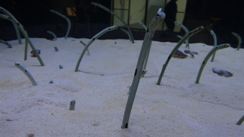 京都の海と川を再現した水槽だけでなく、他のコーナーにも見どころがあります。「さんご礁のいきもの」ではさんご礁の自然環境を再現。砂底からゆらゆらと体を揺らすチンアナゴをはじめ、クマノミやハマクマノミ、カクレクマノミなど日本沿岸に生息する6種類のクマノミを見られます。