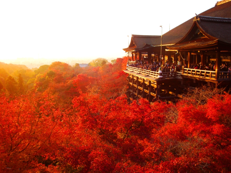 11月下旬~12月上旬が見頃で、紅葉時期には境内のライトアップが行われます。灯りに照らされた舞台と紅葉の景色は、まさに幻想的な優美さ。京都の定番観光スポットの清水寺ですが、ぜひ秋にも訪れてくださいね。