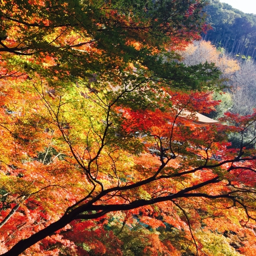 特に見どころは、洗玉澗(せんぎょくかん)という渓谷の紅葉。もっとも高いところに架けられた「通天橋」から、見下ろす格好で眺める洗玉澗の紅葉は壮観です。11月中旬~12月上旬が見頃となっています。