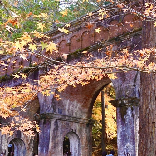 また南禅寺のすぐ脇には、1890年につくられた全長93.2mの「水路閣」も。レンガ造りのレトロな建築物として有名で、ドラマや映画のロケ地としても多く使われています。