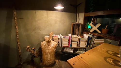 落ち着いた雰囲気の店内は、どことなくレトロさを感じさせる空間。大きなテーブル席が無いため、来店をされている方のほとんどはお一人様でした。ところどころ積み上げられている本は、実は売り物。読書好きの店主の方がセレクトをされているそうで、実は店名のELEPHANT FACTORY COFFEEも村上春樹の『象工場のハッピーエンド』に由来しているそうです。