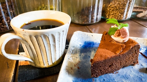 コーヒーが絶品のELEPHANT FACTORY COFFEEですが、実はデザートもあります。筆者はチョコレートケーキ(500円)をオーダー。あくまでも主役はコーヒーなのでサイズはとても小さいのですが、カカオとシナモンの香りが凝縮されたチョコレートケーキはとても濃厚で香り高く、サーブされるコーヒーとの相性も抜群でした。ELEPHANT FACTORY COFFEEを訪れた際にはぜひ併せてオーダーしていただきたい逸品です。
