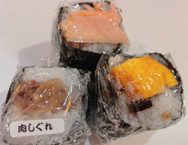 店内には沢山のおむすびがあり、メニューも豊富。冷めても美味しく、旅のお供にもピッタリです。一個130円から220円と、とてもリーズナブルなのもうれしいポイントです。今回は店員さんオススメの品、三個をご紹介します。