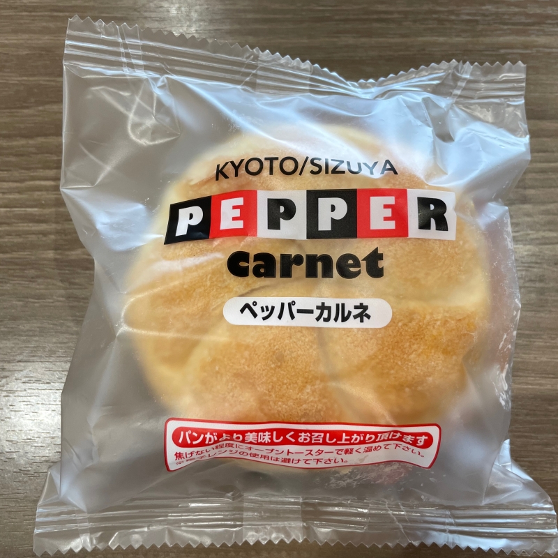 「ペッパーカルネ(260円)」は、同様に、フランスパンにボンレスハム、オニオンスライス、黒コショウマヨネーズが加わった品です。コショウがピリリと効いていて、ちょっぴりパンチのある品です。