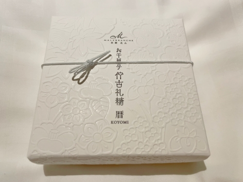 彩も綺麗な「お干菓子佇古礼糖 暦(1,780円)」は、一見和菓子のようなチョコレート。和を感じられるのでお土産として喜ばれるのではないでしょうか?