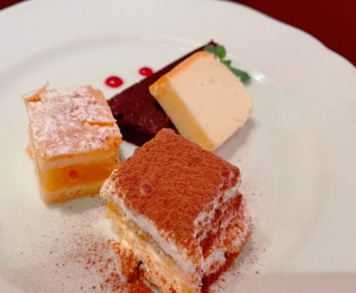 この他、メイン料理はお肉と魚のどちらかを選ぶことができます。最後のデザートは盛り合わせになっていて、色んな味を楽しめるのも嬉しいポイントです。