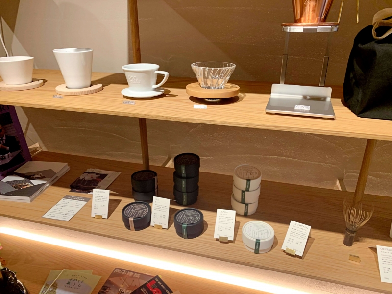 EBISUGAWA店では自宅で楽しむためのコーヒーグッズがずらり。コーヒーを楽しみながら、新たなコーヒーの楽しみ方を発見できる、ショールームでもあるのです。