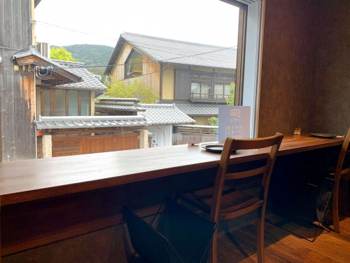 カラフルなくくり猿で有名な八坂庚申堂のすぐ近く、京都らしい風情が漂う一角にある店舗は、日々頑張る自分へのご褒美に相応しい、ちょっぴり贅沢な時間を楽しめる場所。