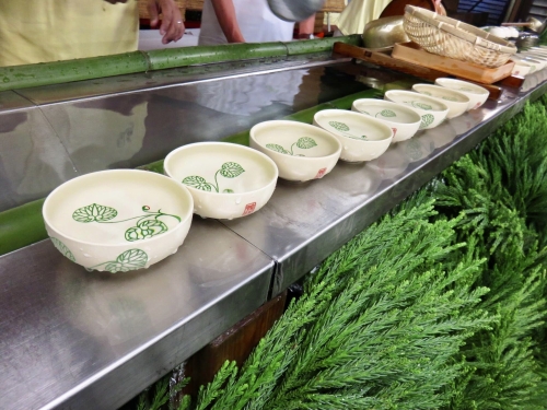 貴船で最大の200席を誇る「貴船べにや」や、流しそうめんが楽しめると人気の「ひろ文」をはじめ、13店ほどのお店が川床を行ないます。