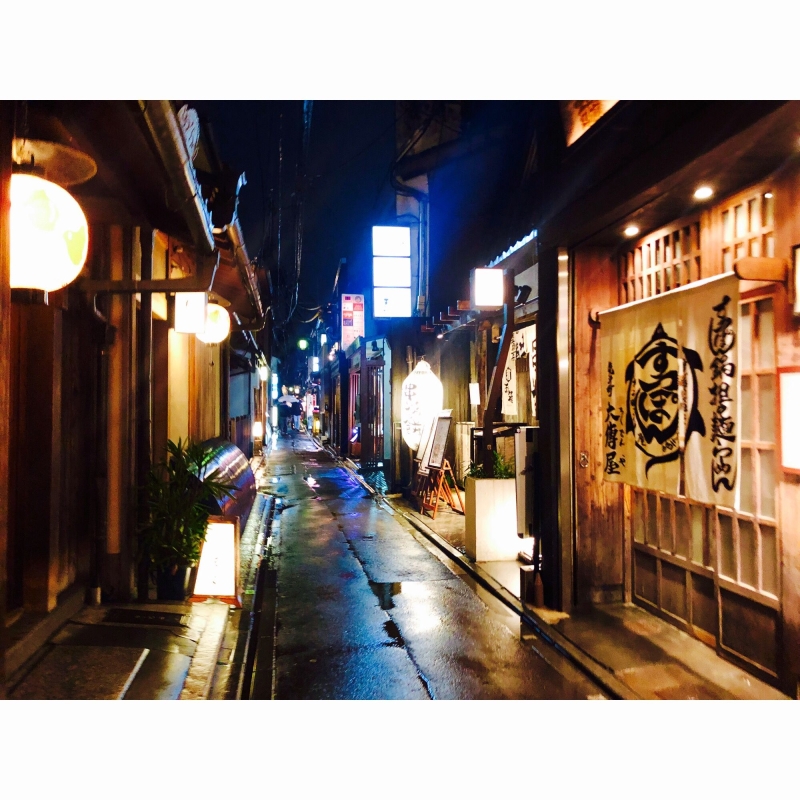 先斗町はコテコテの京都という感じで整備された、いかにも京都といった雰囲気の先斗町通りを指します。趣があって、ここを歩くこと自体が観光アクティビティであり、常に観光客であふれています。