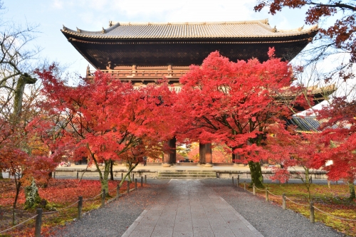 【5】南禅寺:1264年に創建された、臨済宗南禅寺派大本山の寺院です。三門の2階に上がることができ、22mの高さから境内や京都の町の景色を眺められます。<南禅寺のスポット情報/詳しい記事はこちら