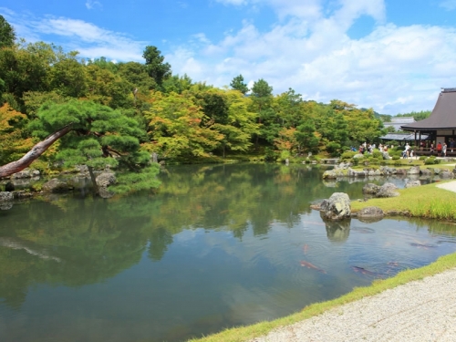 【16】天龍寺:京都五山のなかで第一位の天龍寺。見どころは日本で最初に史跡・特別名勝に指定された曹源池庭園で、嵐山、亀山を借景にした美しい景観が楽しめます。<天龍寺のスポット情報