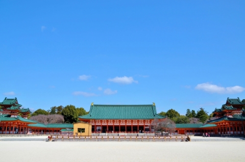【22】平安神宮:明治28年(1895年)に、平安遷都1100年を期に市民の総社として創建。平安京の正庁(朝堂院)を8分の5のサイズで美しく再現しています。<平安神宮のスポット情報