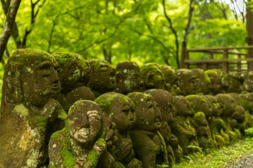 【6】愛宕念仏寺:参拝者の手により彫られた1,200体を超える石造の羅漢さんが並びます。ひとつとして同じ顔はなく、愛らしい羅漢さんにほっこりしてしまいますね。<愛宕念仏寺のスポット情報