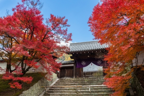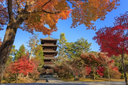【10】東福寺:京都で一二を争う紅葉の人気スポット。境内には約2,000本ものもみじが植えられており、秋には紅葉の赤や黄色で境内が埋め尽くされます。<東福寺のスポット情報>