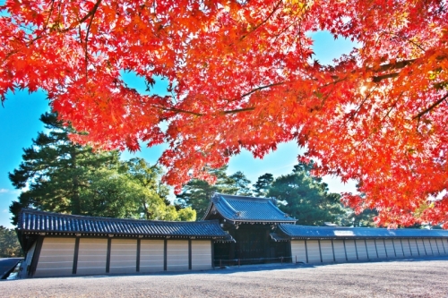 【14】京都御苑:広大な敷地内は自然豊かで、もみじやケヤキ、イチョウなど様々な木々が赤や黄色に染まる紅葉景色を堪能できます。<京都御苑のスポット情報>