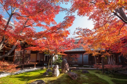 【20】建仁寺:もみじと苔のコラボレーションを楽しめる中庭の庭園「潮音庭」が紅葉の見どころで、四方から紅葉景色を眺められます。<建仁寺のスポット情報>