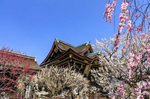 【10】北野天満宮:50種類の梅の木が約1,500本植えられた「梅苑」を敷地内に有し、例年2月初旬から3月下旬までの開苑期間には梅の花を愛でに多くの観光客が訪れます。<北野天満宮のスポット情報>