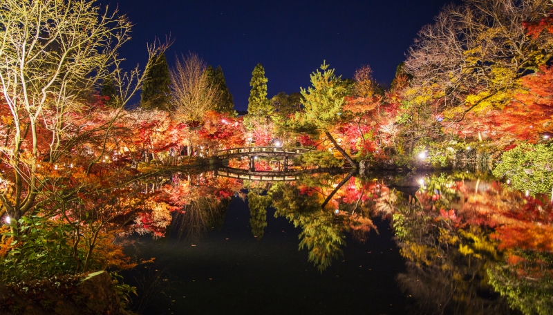 京都を代表する紅葉の名所のひとつ。正式名は禅林寺で、浄土宗西山禅林寺派の総本山となります。境内には3,000本ものモミジが植えられており、「モミジの永観堂」とよばれるほど紅葉で名高いく、見頃を迎える11月中旬〜11月下旬ごろには夜間拝観も実施され、ライトアップされた紅葉が見事です。