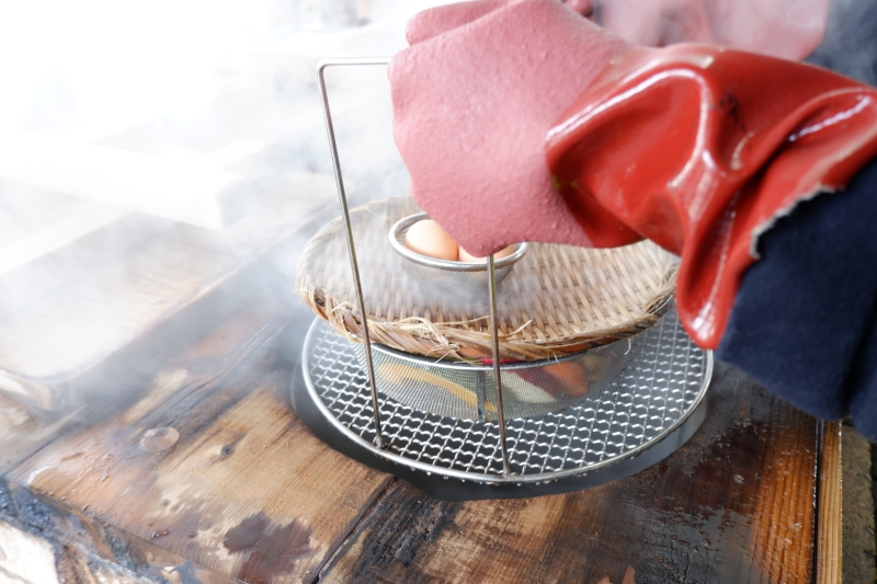 鉄輪温泉にある「地獄蒸し工房 鉄輪」では、館内で販売している食材はもちろん、自分で食材を持ち込んで調理をするのもOK(持ち込み料あり)。人気の「地獄蒸し玉手箱」は、大分県産の鶏肉をはじめ、卵や季節の野菜、豚まんなどがトッピングされており、バランス良く蒸し料理を堪能できます。