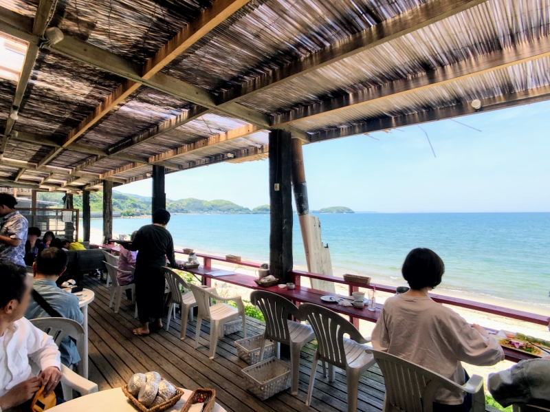 地元糸島産の野菜をはじめ、玄界灘の魚や自家栽培のタイハーブが使われたメニューは、どれもフレッシュな味わい。ランチはもちろん、夕方には食事と一緒にサンセットも堪能できますよ!