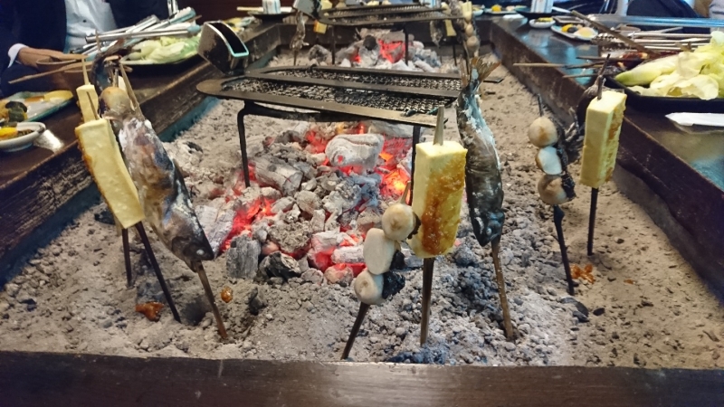 出典:tripnote.jp囲炉裏でいただく高森田楽とやまめなど。