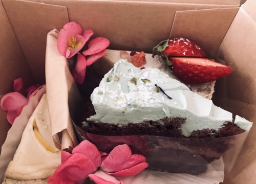 ランチプレートは、綾町産の無農薬野菜を中心に、週替わりのマクロビオティックプレートを提供しています。動物性の材料や乳製品を使用しておらず、優しい味わいです。また、植物性の原材料だけで作られたケーキ類もおすすめ。