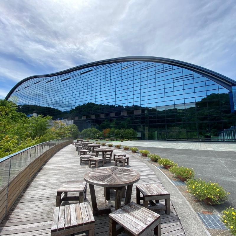 太宰府天満宮の裏にあり、アクセストンネルを使って歩いて5分で到着します。ミラーガラスを用いた壁面に、流線型の屋根と、外観が特長的な博物館です。