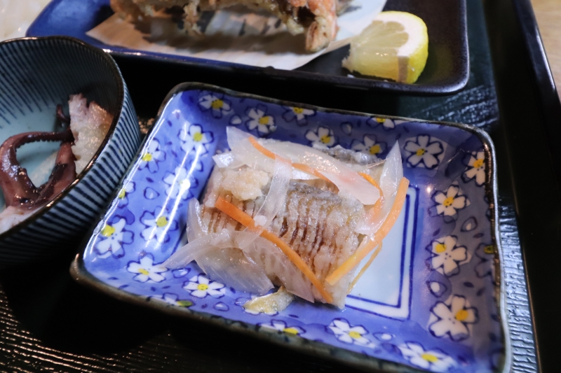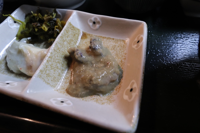 食べ方は、塩もみ処理と下ごしらえをし、そのうえで唐揚げにするか、味噌煮にします。筆者は味噌煮を頂きました。小さく刻まれて、食べやすいかたちで提供されます。