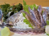 写真:Kikuchi クツゾコ(500円/2匹) |  写真:Kikuchi 煮つけ |  写真:Kikuchi アカメのお刺身 |
