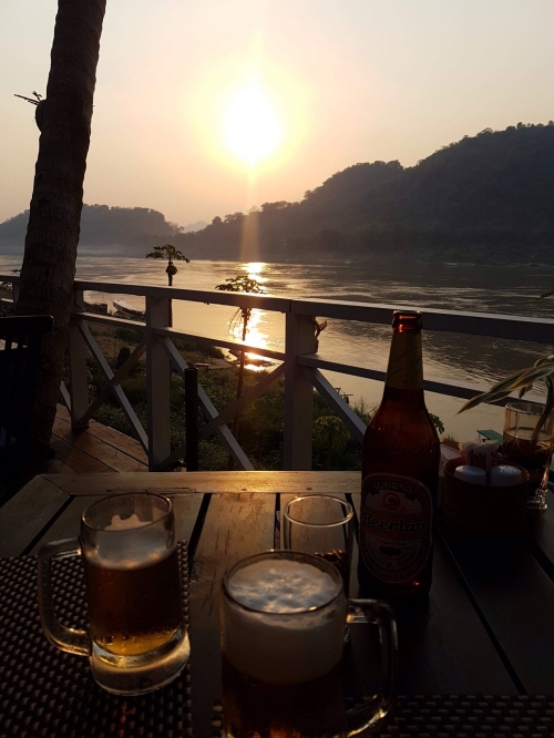 メコン川沿いにお気に入りのレストランを見つけたら、メコン川に沈む夕陽をそこから眺めに行きましょう。ラオビールを飲みながらサンセットを目に焼けつける。ルアンパバーンでは必須の体験です。