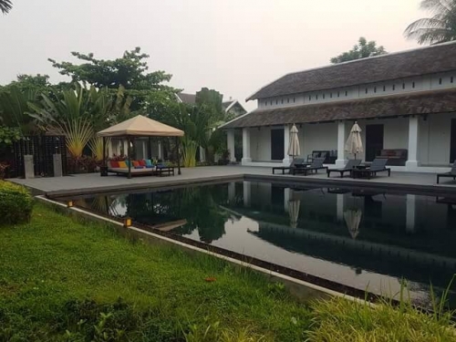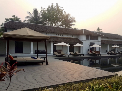 ラオスの伝統建築物とフランス植民地時代の建築物が融合されたホテルの敷地内は、程良い広さで、落ち着いた雰囲気の大人向けなホテルです。